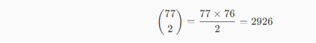 Le nombre total de façons de tirer 2 cartes parmi 77 est :