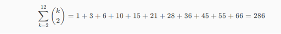 Il faut donc faire la somme de tous ces produits pour les 165 combinaisons.