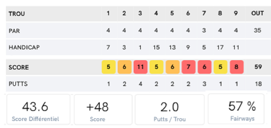 Chaque trou devient une leçon, chaque raté une anecdote à raconter. Et même si la carte de score ne reflète pas mes ambitions, elle témoigne d'une matinée riche en émotions, en rires et en balles perdues.