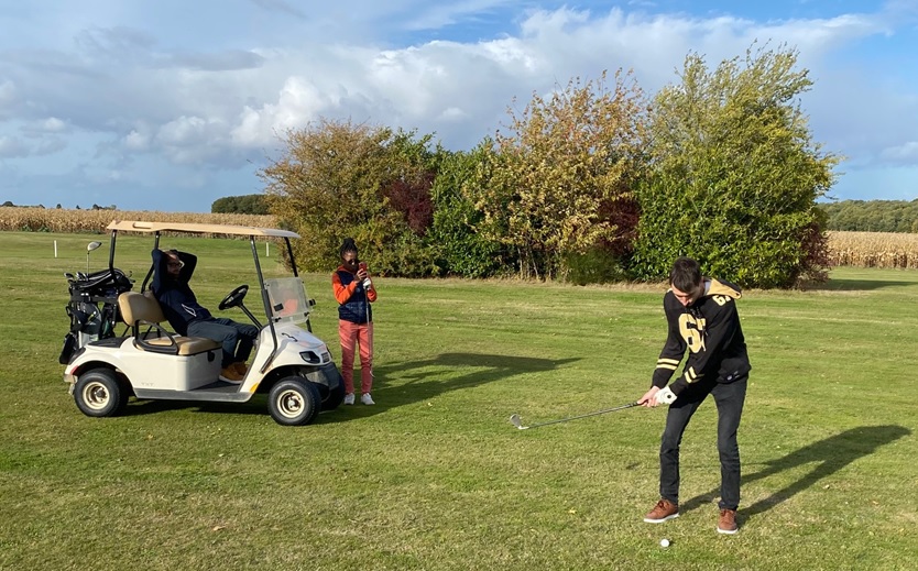 Aurélien, de retour sur les greens après treize années d'absence, fait preuve d'un joli coup de patte malgré quelques grattes inévitables. Privé de driver, la distance fait défaut à leur sexuelle équipe, mais le duo compense avec les swings précis de Ramata, toujours en pleine ascension golfique.