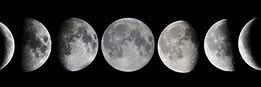 Un cycle lunaire est constitué des phases de la Lune : Nouvelle lune, Premier croissant, Premier quartier, Lune Gibbeuse, Pleine lune, de nouveau Lune Gibbeuse, Dernier quartier, Dernier croissant. |